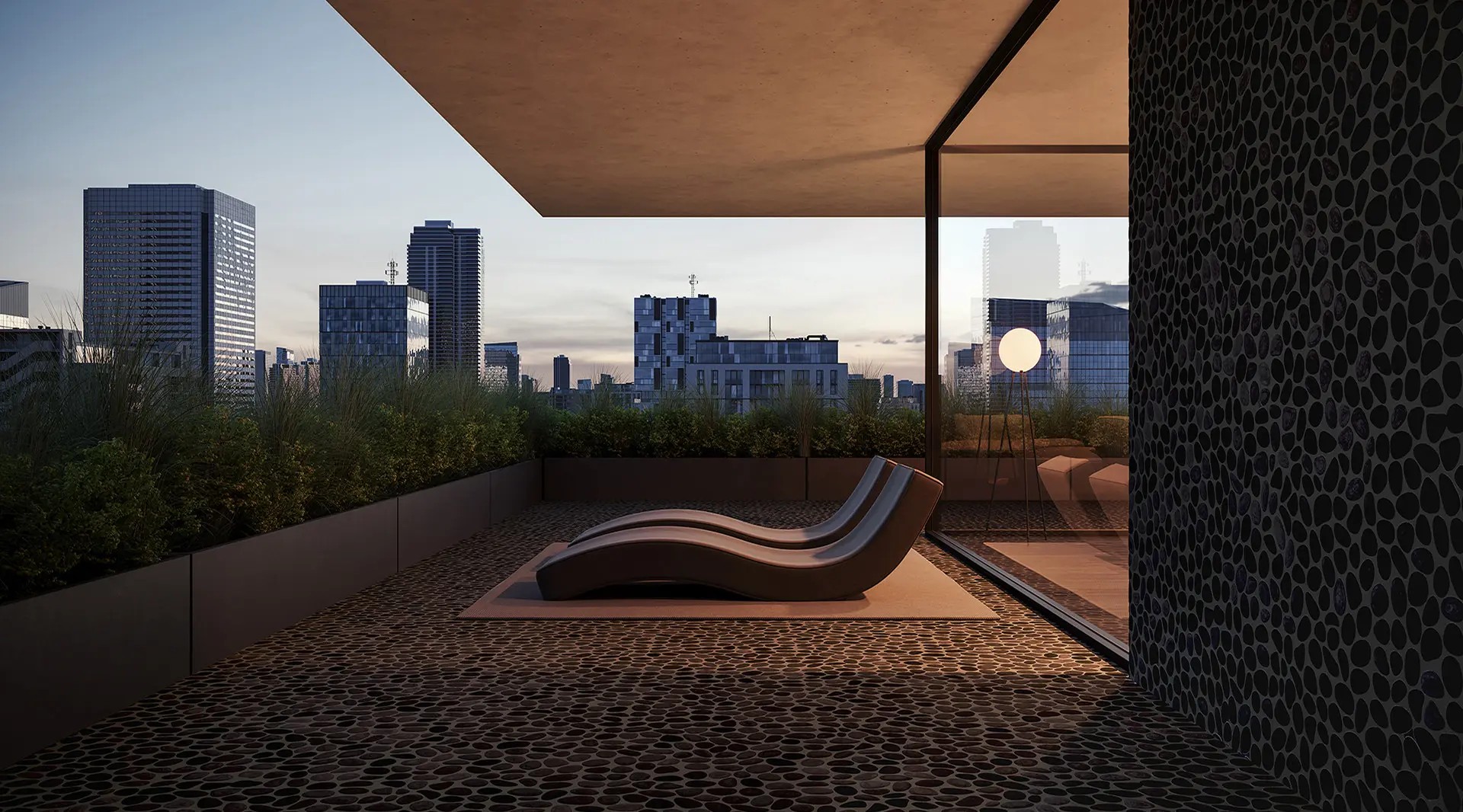 Glass is celebrated in a combination of soothing and introspective shapes